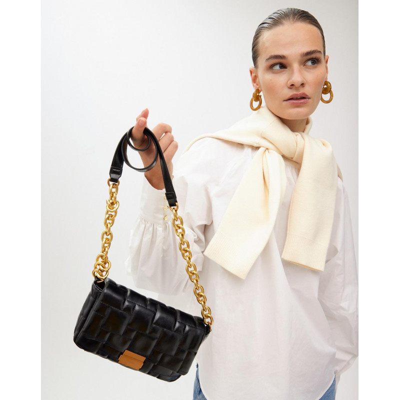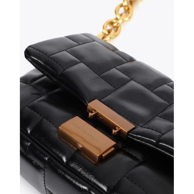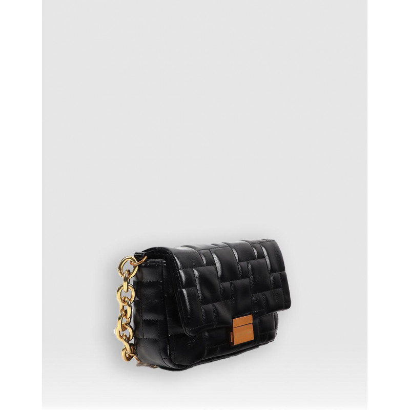 | SupplierNote | Bandolera acolchada a cuadritos con cierre automático personalizado NEGRO |